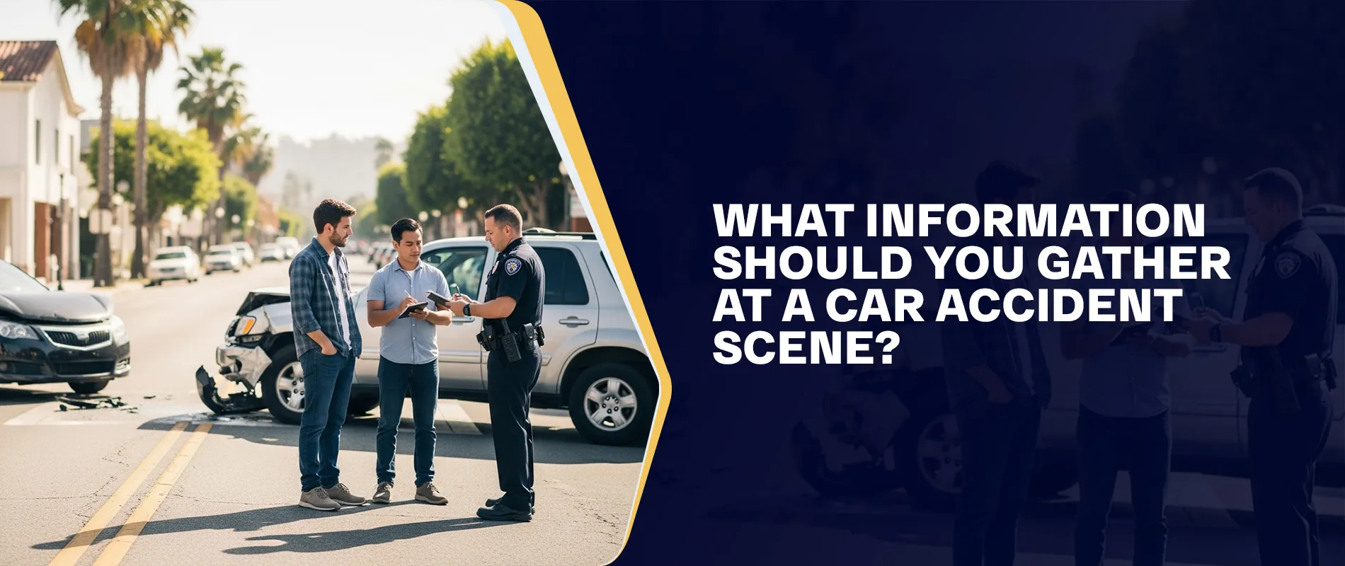 TL;DR: At a car accident scene, you should collect personal and insurance information plus photos, videos, and witness statements. Drivers and passengers who suffer injuries face a higher risk without this evidence, as negligence and coverage decisions depend on early records.